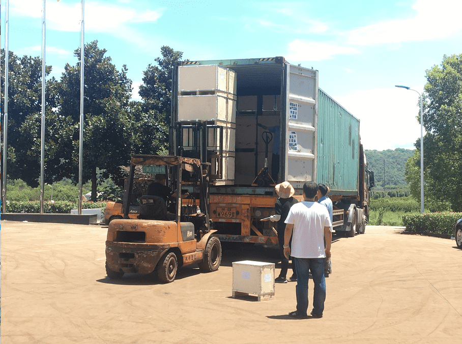 كان عمال DM لدينا يقاتلون تحت أشعة الشمس من أجل تحميل الحاوية لتوصيل الضاغط.
